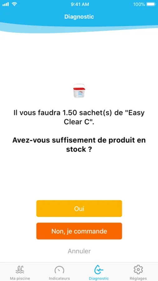 - Have a personalized analysis based on your pool model and equipment, your maintenance habits and your treatment method. Indeed, the system is linked to your customer account and allows you to have a custom prescription.