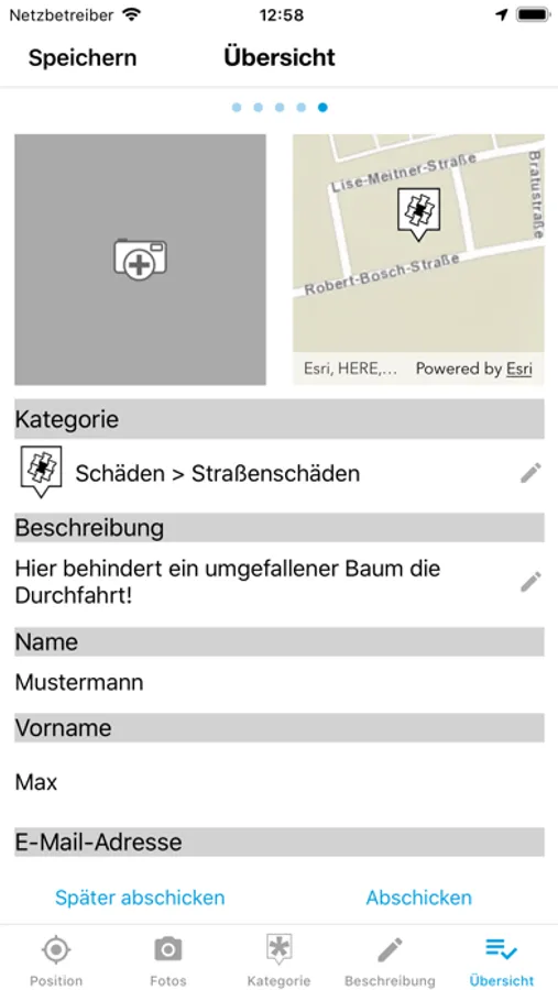 - Schicken Sie die Meldung ab