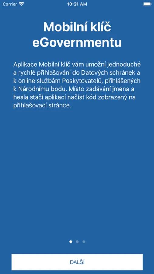 Aplikace Mobilní klíč eGovernmentu pro mobilní platformu iOS umožňuje jednoduché a rychlé přihlášení do Datových schránek i řady dalších webových aplikací veřejné správy bez nutnosti zadávat složité jméno a heslo.