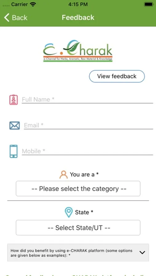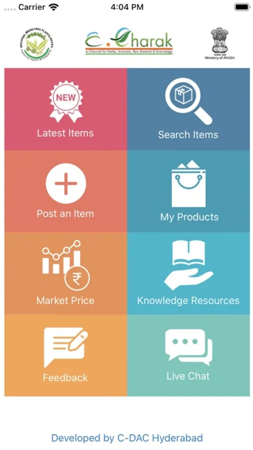 “e-CHARAK” - e-Channel for Herbs, Aromatic, Raw material And Knowledge is a platform to enable information exchange between various stakeholders involved in the medicinal plants sector.The app is made available in English, Assamese, Hindi, Kannada, Marathi, Tamil and Telugu. Other Indian languages will be added shortly.