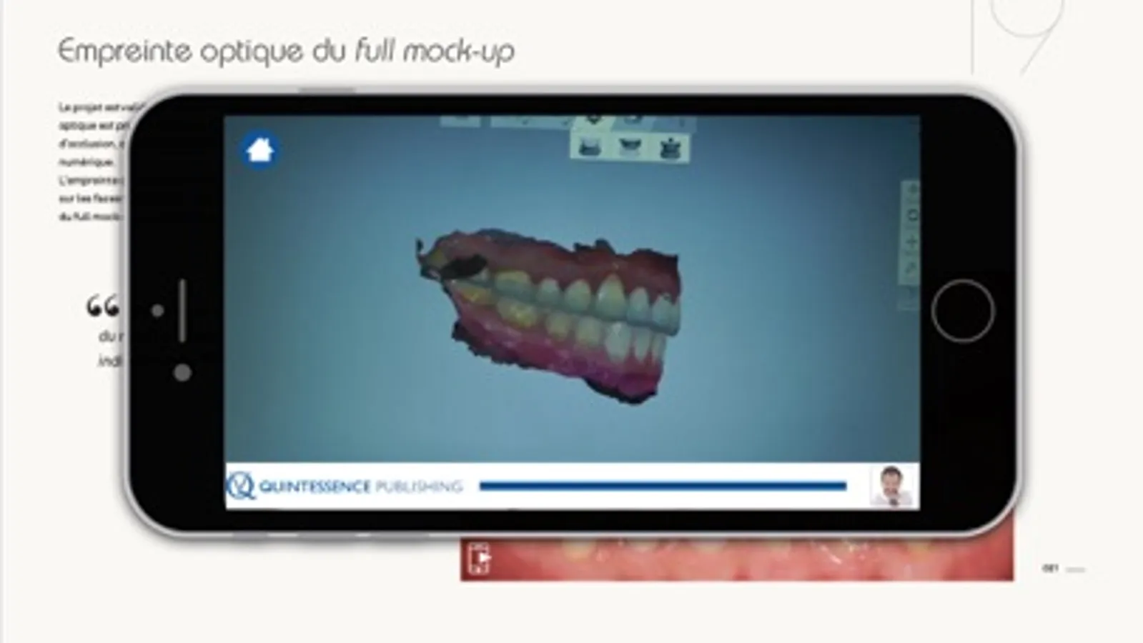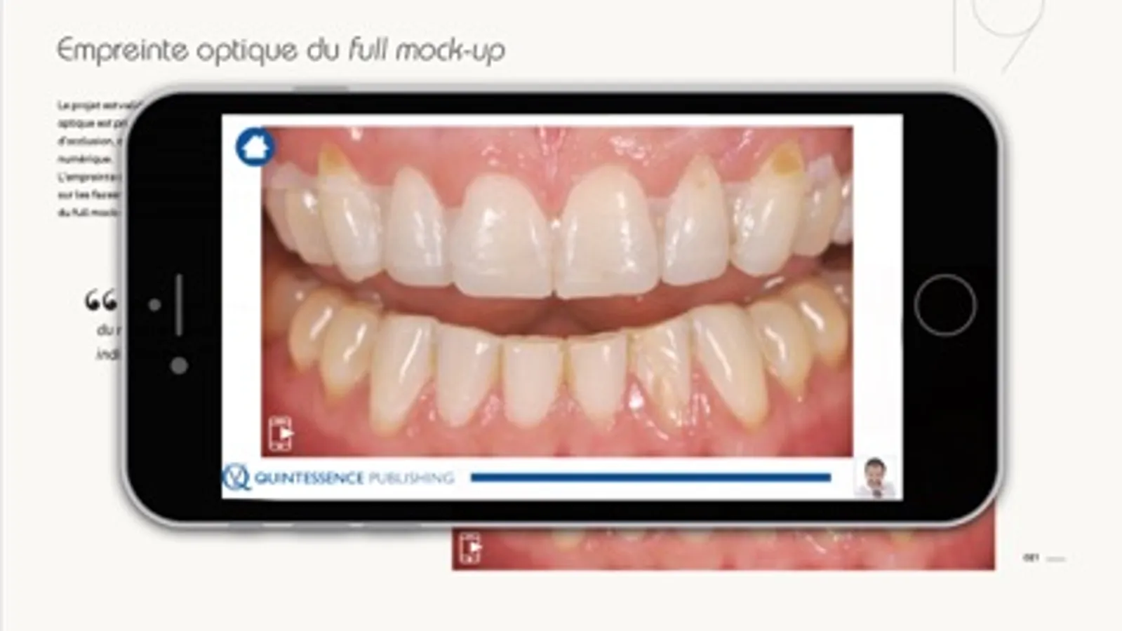 Grâce à la Réalité Augmentée, vous pourrez visionner les vidéos des étapes les plus importantes des cas cliniques présentées dans le livre "Quintessence Koubi".