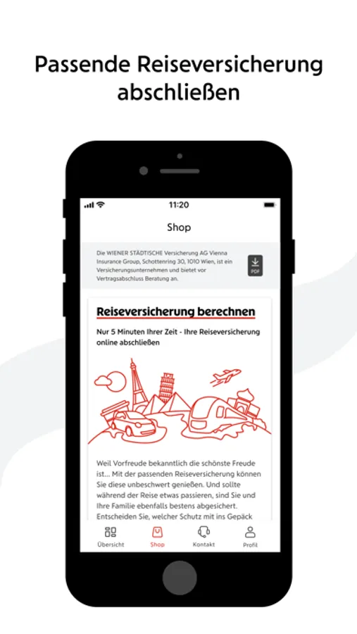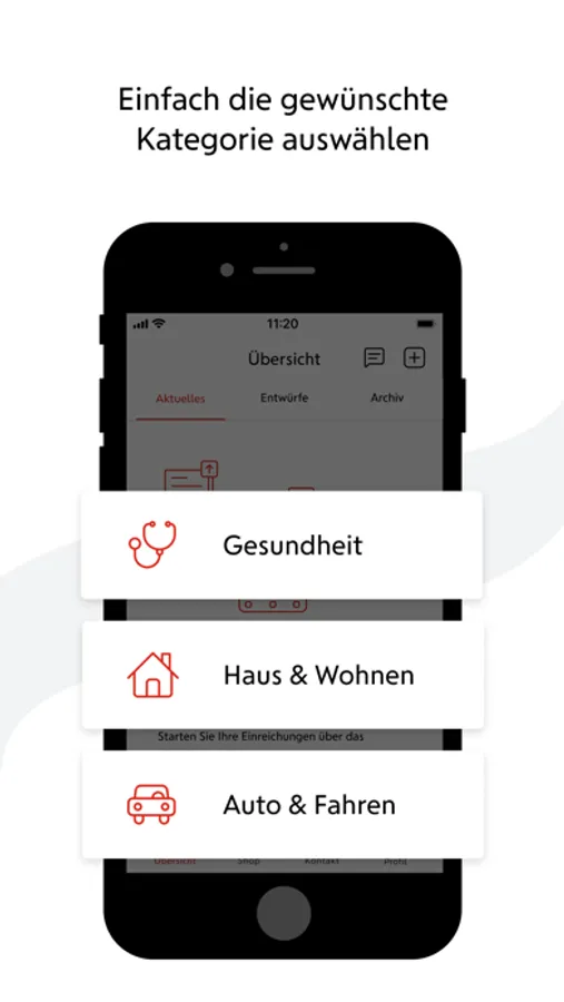 • Im Shop-Bereich finden Sie die aktuell in der App abschließbaren Versicherungsprodukte. Nach der kurzen Ermittlung Ihrer Wünsche und Bedürfnisse erhalten Sie eine persönliche Produktempfehlung und die Möglichkeit zum sofortigen Versicherungsabschluss.