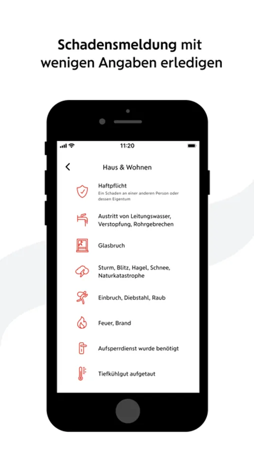 • Wählen Sie aus, was Sie an uns melden möchten (z.B. Unwetterschaden, Autounfall, ärztliche Behandlung ...).