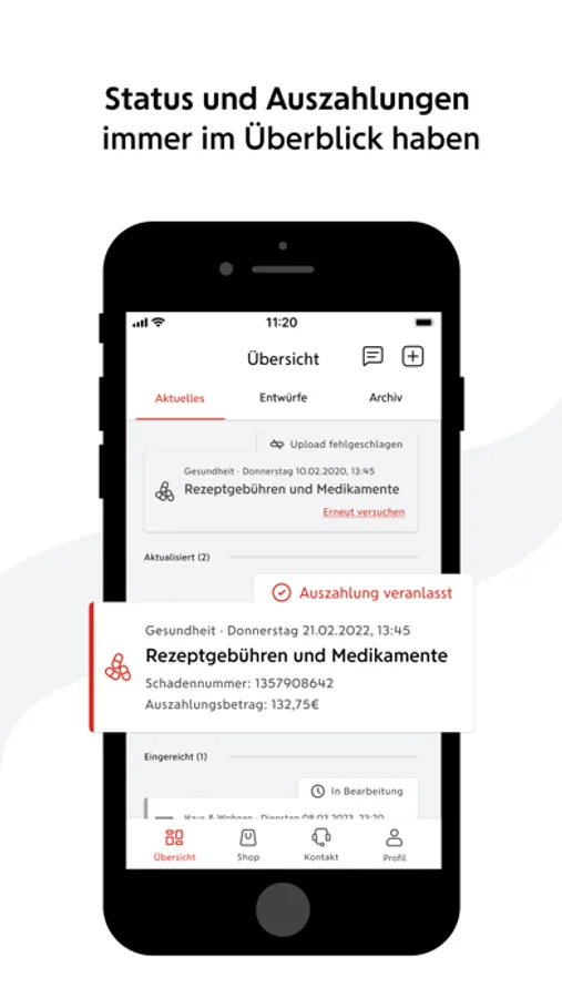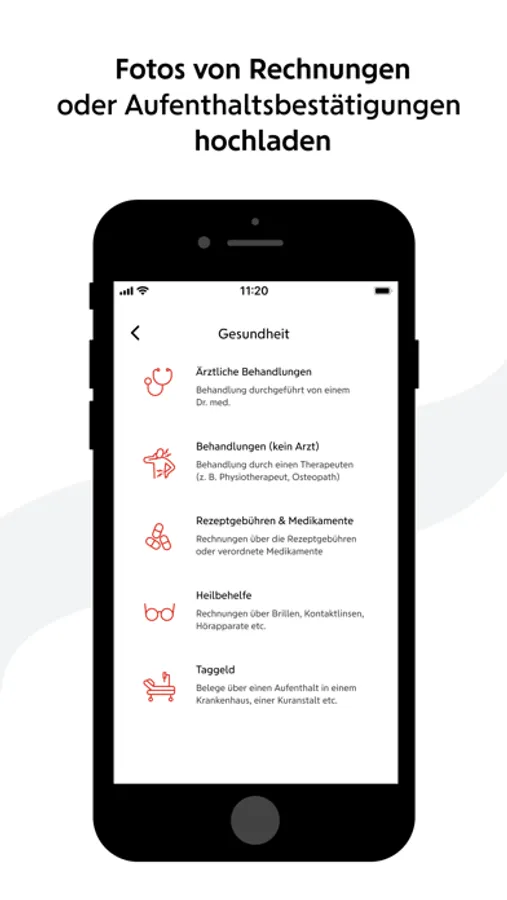 Besonders schnell und bequem reichen Sie Rechnungen von Ärzt:innen, Therapeut:innen, über Medikamente oder Heilbehelfe sowie Bestätigungen über den Aufenthalt in einem Krankenhaus, einer Kur- oder Rehaeinrichtung ein.