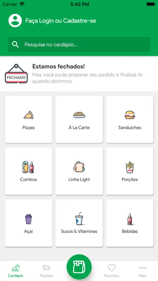 Faça seu pedido, pague diretamente pelo App e escolha como quer receber.