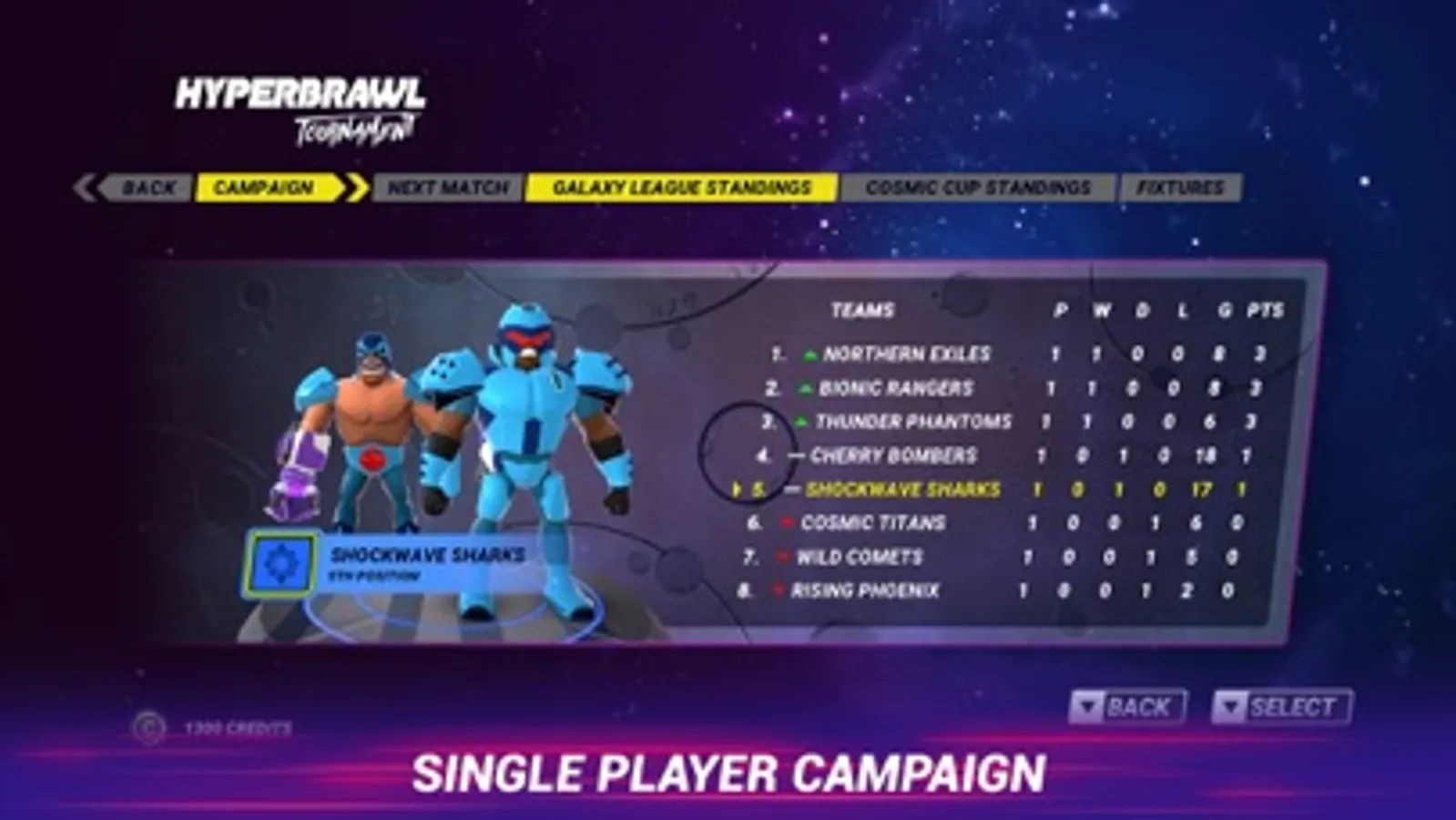 - Campaign Mode: A single player League and Cup mode where you create your ideal team and take on the Universe’s finest.