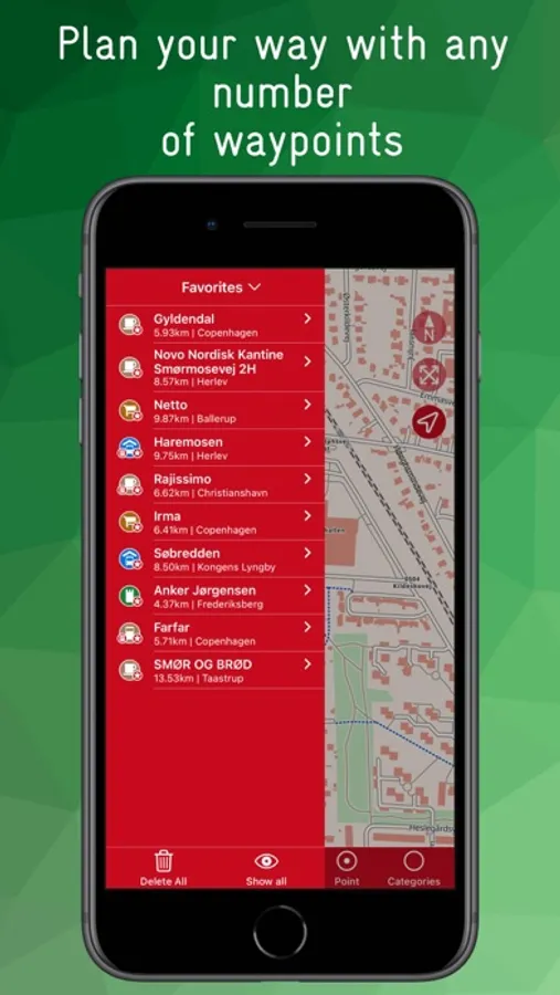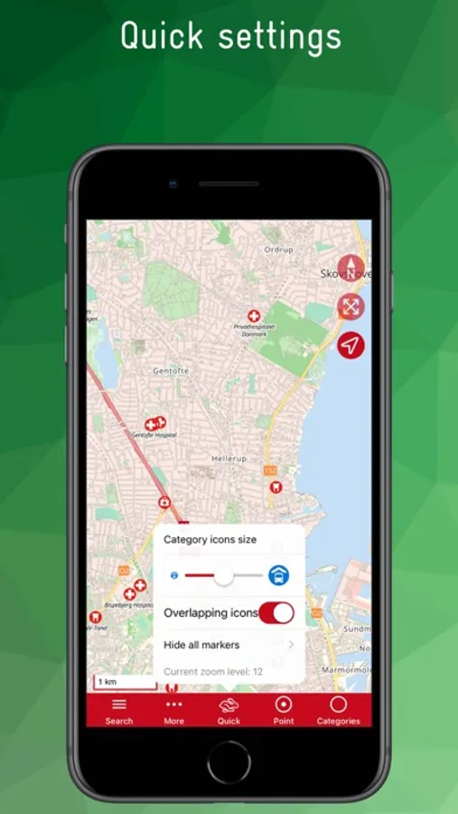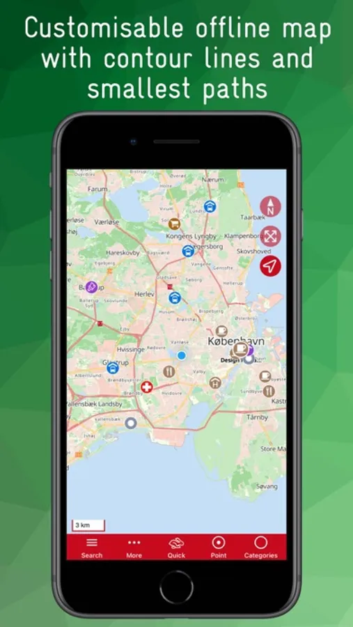 POIs are grouped into categories and can be displayed as layers. For example, you can display all restaurants, public transport lines, banks, hiking trails, charging stations and doctors on the map. The size and overlap of the icons can be adjusted to improve clarity.