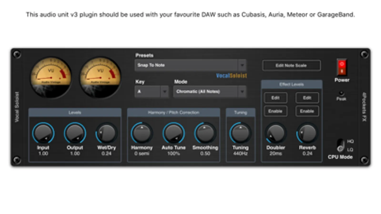 The effect includes MIDI control over pitch. If your DAW (such as AUM) supports sending key on/off information to the effect you can directly control the pitch of the harmony. For those DAW's that do not support this you are able to route MIDI from one instance of Vocal Soloist to another instance listening on the same bus.