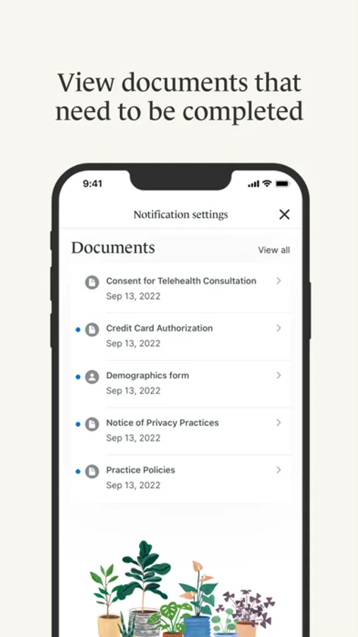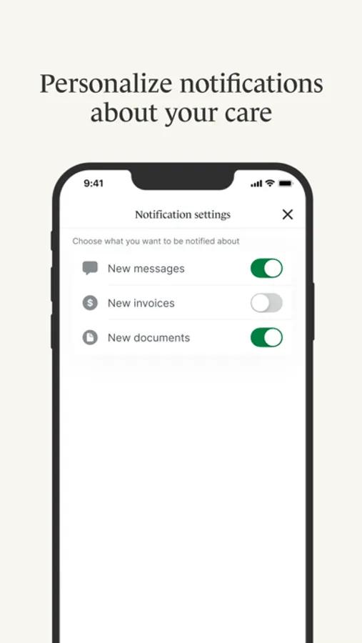 • Personalized notifications – Get push notifications sent right to your phone regarding any new messages, invoices, or documents that have been sent to you by your practitioner.