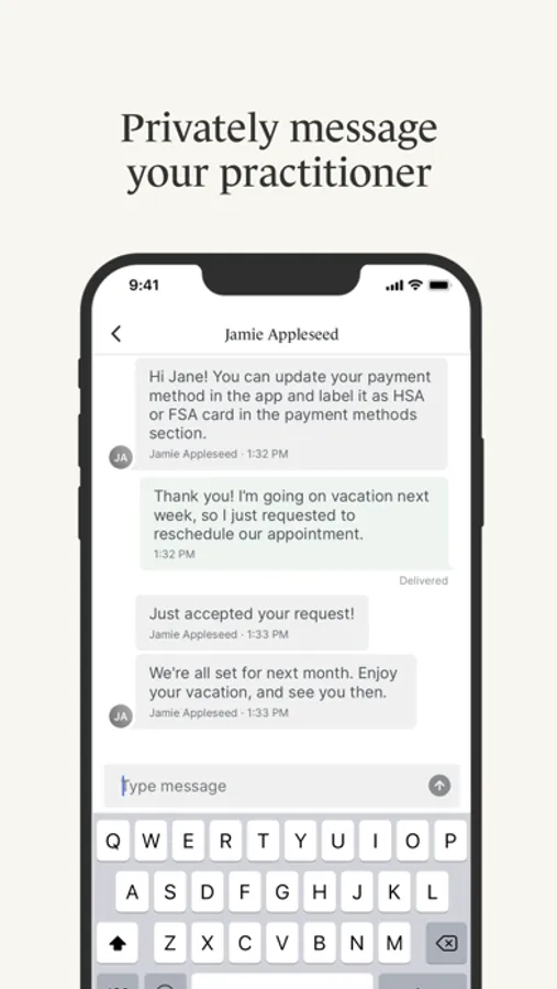 • Secure messaging – Message your practitioner directly from your phone knowing that all communication is secure and private.