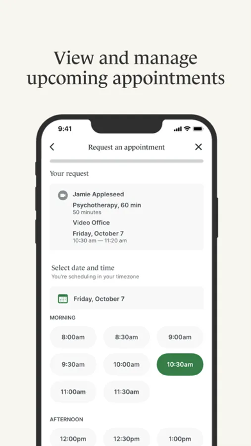 • Upcoming appointments and requests – View all your upcoming appointments, and request a new appointment with your practitioner directly from the app.