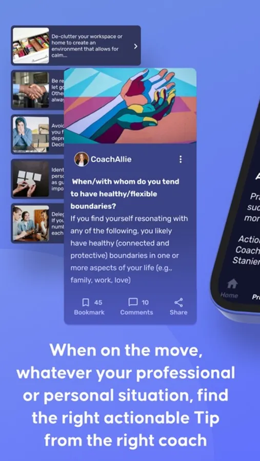 • When on the move, whatever your professional or personal situation, you can access the right actionable Tip from the right coach.