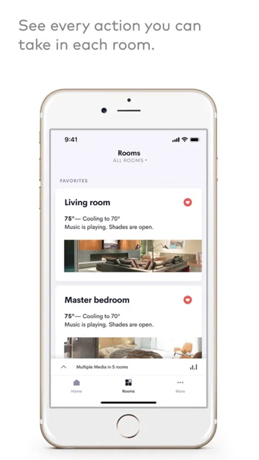 Access all your home’s information via smooth animations and easy-to-navigate, responsive icons. Organize your favorites, navigate your rooms, and personalize each destination with your image of choice.