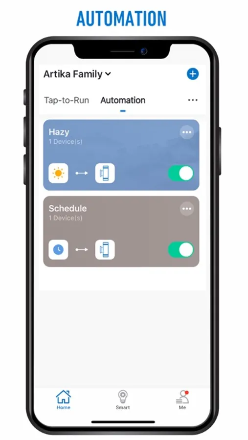 The Artika app puts you in control. Group devices together by room or zone. Create scenes that welcome you home, set the ambiance for movie night, or put the house to sleep at bedtime. Schedule your devices to turn on/off based on temperature, geolocation and time. Compatible with Amazon Echo and Google Home voice control, it can be as simple as saying it. With the widget feature, no need to unlock your phone to control your devices or your favorite scenarios, a swipe of the finger and a click will suffice.