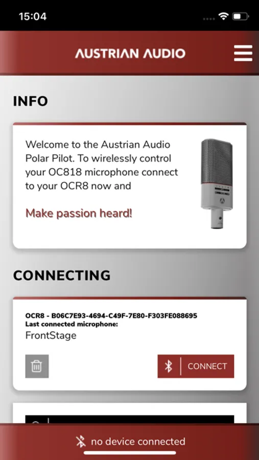 It includes PolarPilot to control your OC818 microphone over the OCR8 Bluetooth Remote.