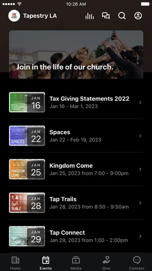You'll be able to view upcoming events, listen to sermons, connect with cell groups, give and donate, and learn about who we are! Tapestry LA is inviting broken people to be restored by Jesus in the whole of life.