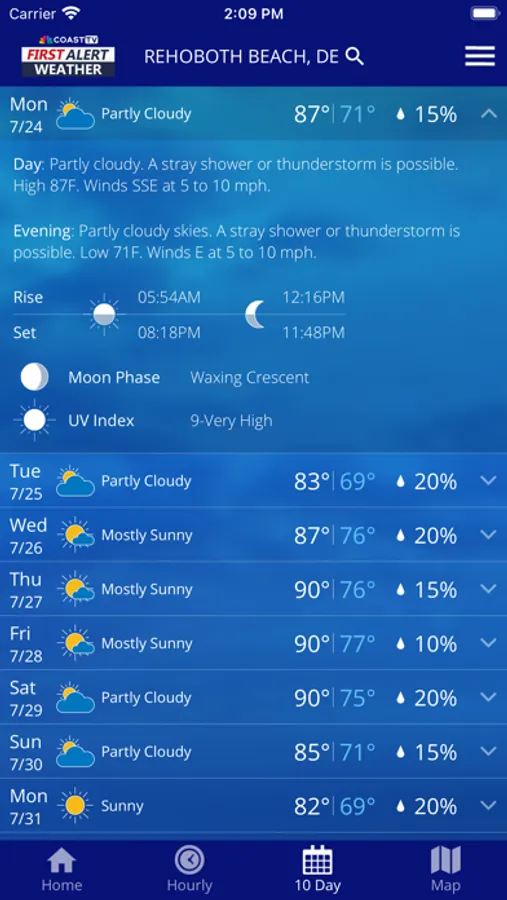 The CoastTV Weather App includes: