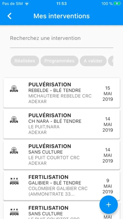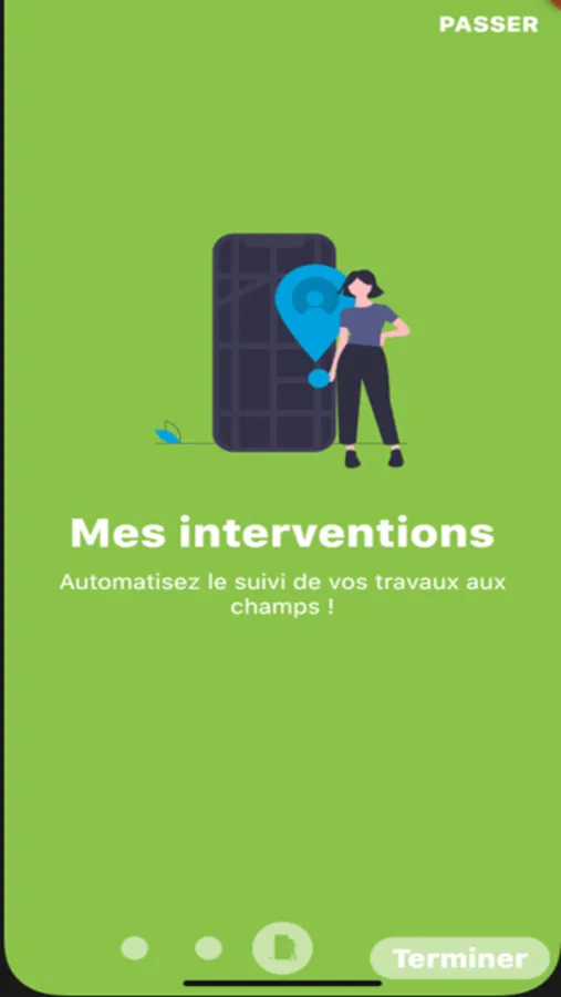 L'application FarmLEAP vous géolocalise et communique en autonomie avec votre flotte de Boîtiers afin de réduire au maximum votre temps de saisie. Une fois votre parcours terminé, retrouvez vos nouvelles interventions sur la plateforme FarmLEAP et ajoutez les intrants si nécessaire. Votre saisie est déjà terminée !