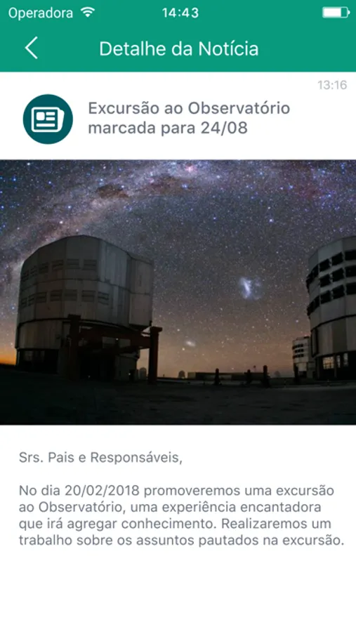 Com este aplicativo, os pais, responsáveis e professores poderão receber as últimas informações da escola, as notícias do dia a dia dos seus filhos e o calendário de atividades escolares.