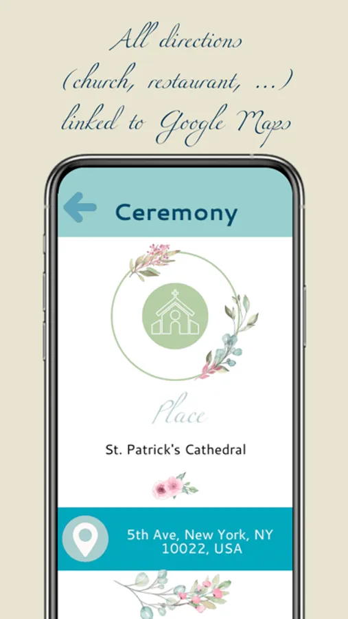 - Place: For both civil or religious celebrations, a Google Maps link of the place is included so that all guests can arrive without problem.