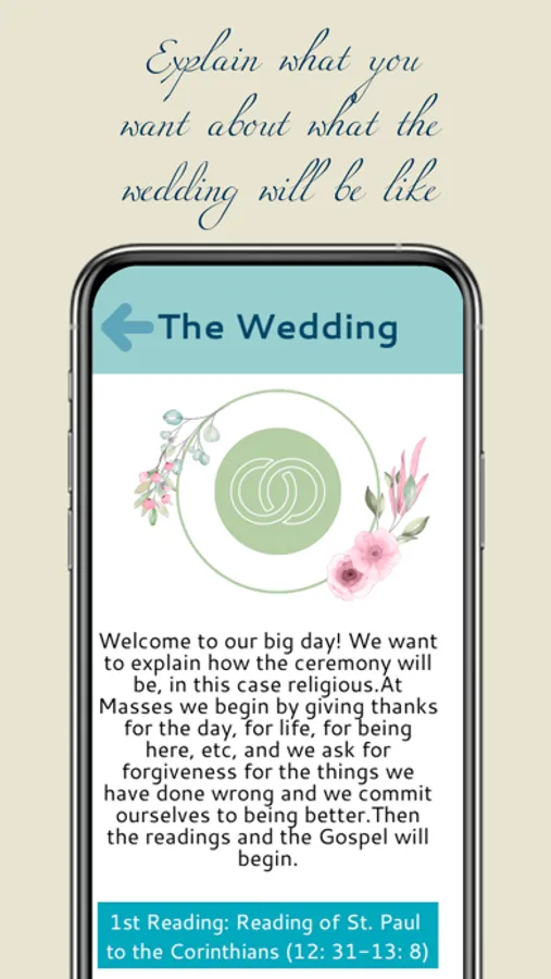 - Ceremony: From the web you can explain in detail how the ceremony will be. Especially in religious ceremonies there are several readings and different moments, and that is why on the web we put the option of adding or removing sections with different fonts to highlight the different moments.