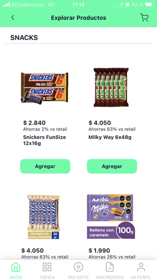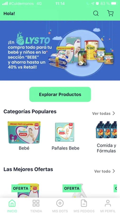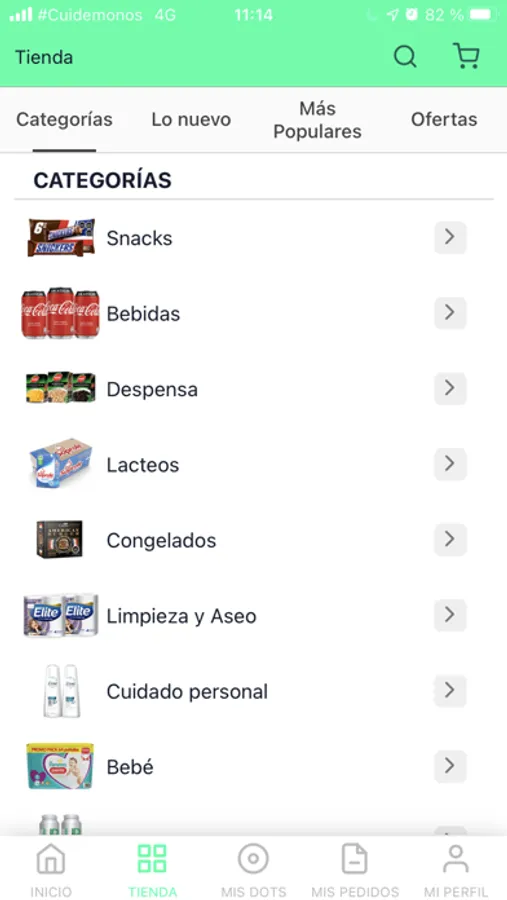 Sección "Tienda": En esta sección puedes comprar todos tus productos esenciales del mes generando un ahorro real, programas tus pedidos para entrega am o pm con despacho máximo de 24 horas.