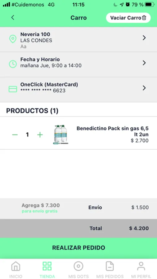 Sección "Express Mis Dots": en esta sección puedes pedir tus productos recurrentes en un solo click por medio de los botones virtuales.