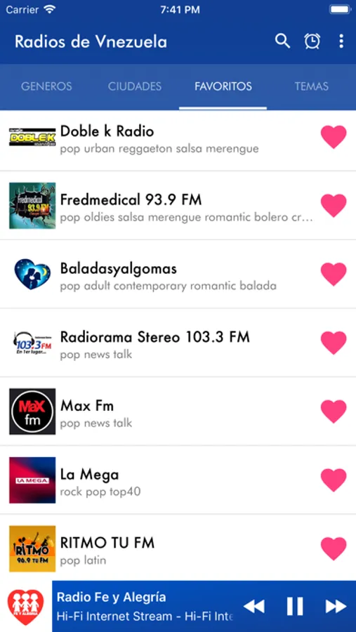 ¡Escuchar Radios de Venezuela nunca fue tan fácil! Disfruta de las transmisiones sin interrupciones de los mejores géneros Latin, Salsa, Bachata, Clasica , Jazz, POP, rock, electro, dance, hip hop, disco, y ¡hasta Reggaeton! Canta a todo pulmón y baila al ritmo de la música que te mueve. Escucha noticias, eventos deportivos, narraciones de partidos, y disfruta cuando quieras y donde quieras. No te quedes atrás y mantente siempre al tanto de las tendencias musicales y todo lo que está sonando en Venezuela.