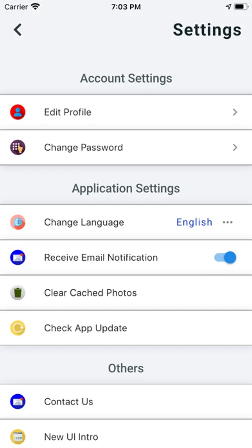 - In app customer support through contact us form
