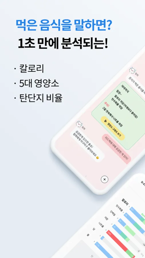 - 먹은 음식을 말해주면 칼로리, 5대 영양소, 탄단지 비율을 1초 만에 분석해 줘요.