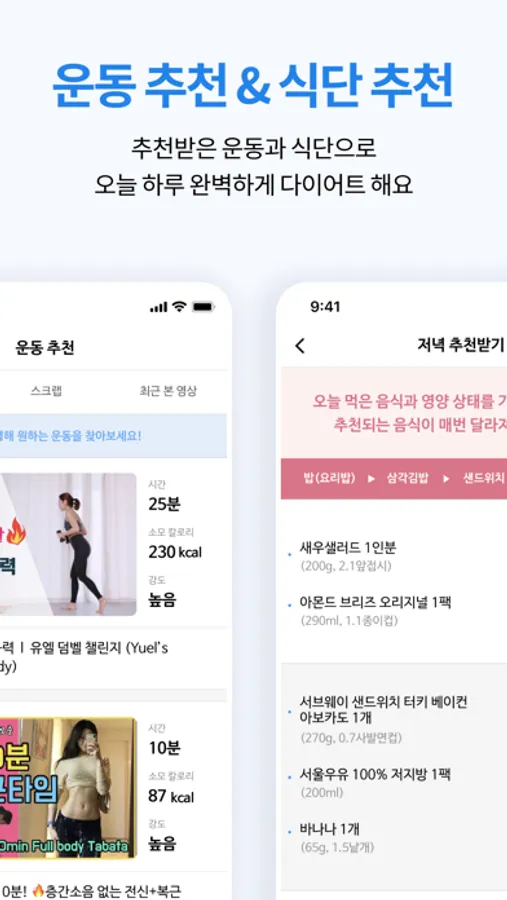 - 그날그날 먹은 칼로리와 영양소를 고려한 맞춤 식단을 골라 먹을 수 있어요.