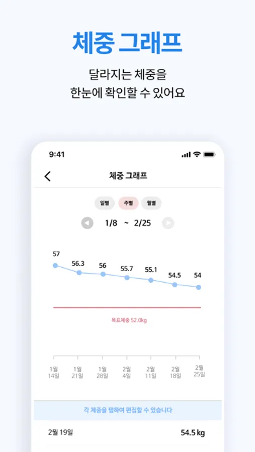 - 변화하는 체중의 추이를 손쉽게 확인할 수 있어요.