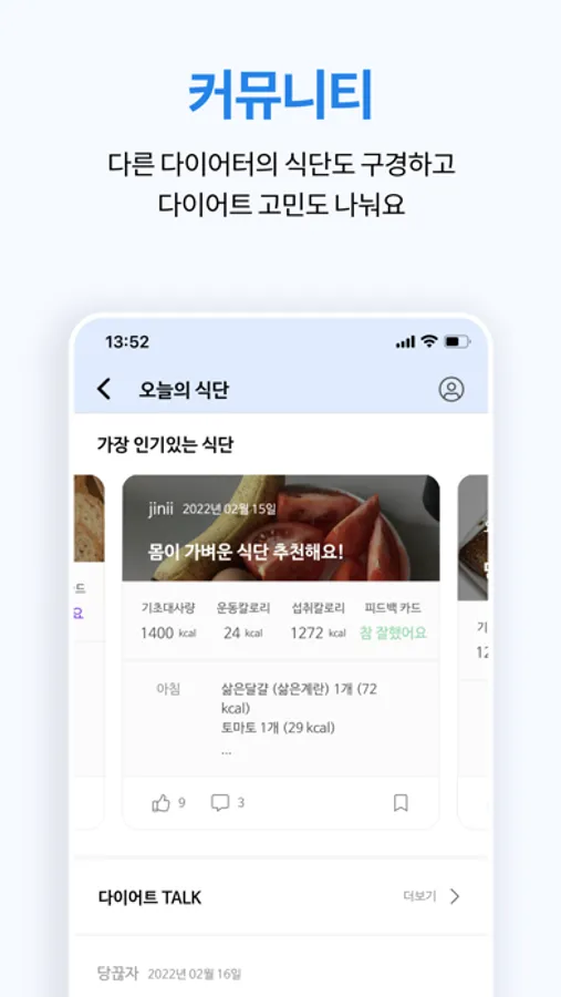 - 다른 유저들과 식단 및 다이어트 정보를 나누며 교류할 수 있어요.