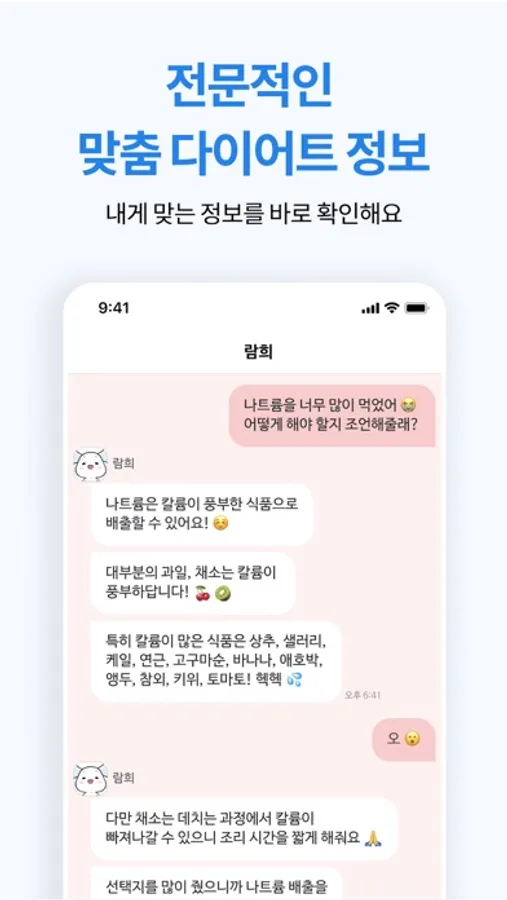- 챗봇 코치가 내 상황에 맞춘 따뜻한 위로, 응원, 질책으로 다이어트를 포기하지 않도록 도와줘요.