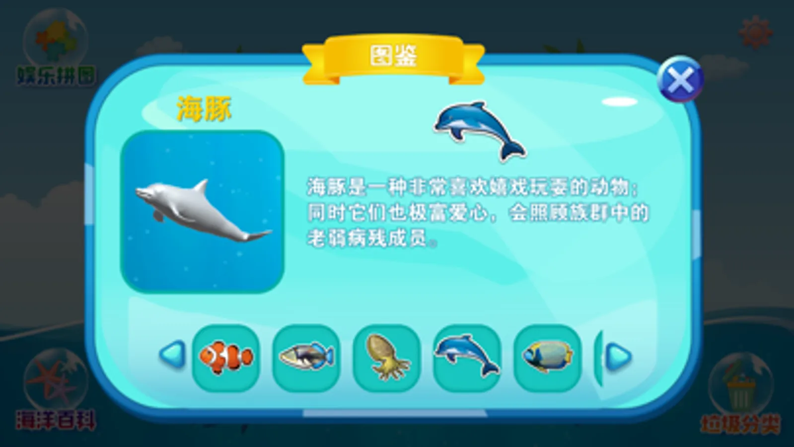 2. 垃圾分类:提倡“海洋环保绿化,不随便丢垃圾”的教育意义,通过答题的方式让小朋友充分了解海洋的垃圾类型;