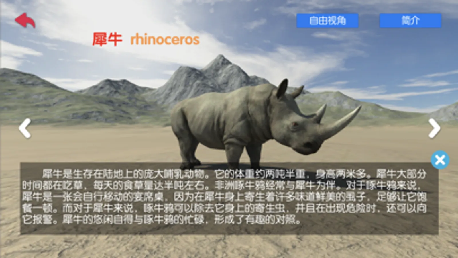 1.在动物学习模式中,点击屏幕动物会做出各种不同的有趣动作(30种动物共上百个动作),如睡觉,扑咬,奔跑等等。开启自由视角后能进行360度的观察。