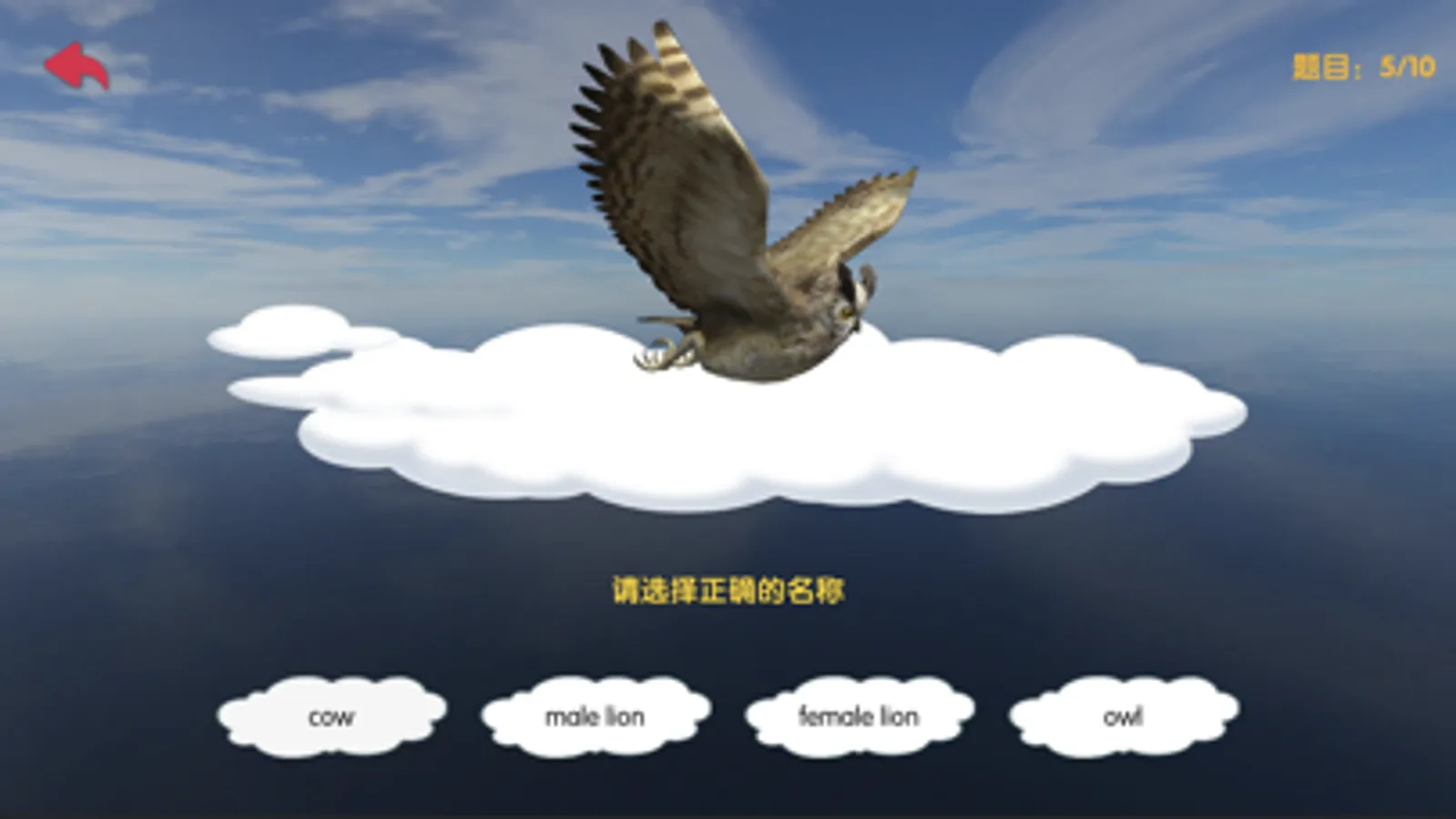 3.在考试练习模式中,需要根据出现的动物正确的选择该动物名字,一次考试有10题。作答分数高会有一定的奖励。