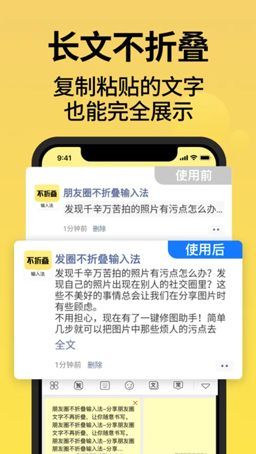 发圈直接粘贴文本会被折叠成一行?点评评论直接粘贴文本也会被折叠?发圈不折叠输入法,让您的文案不再被折叠,十分简单方便。只需简单两步,复制并粘贴长文本,即可实现自动逐字输入,避免折叠成一行