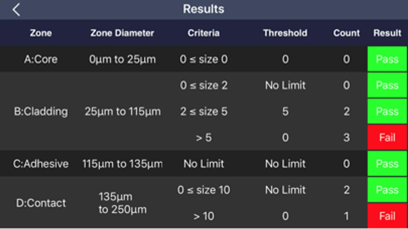 - PASS/FAIL analysis according to IEC 61300-3-35.