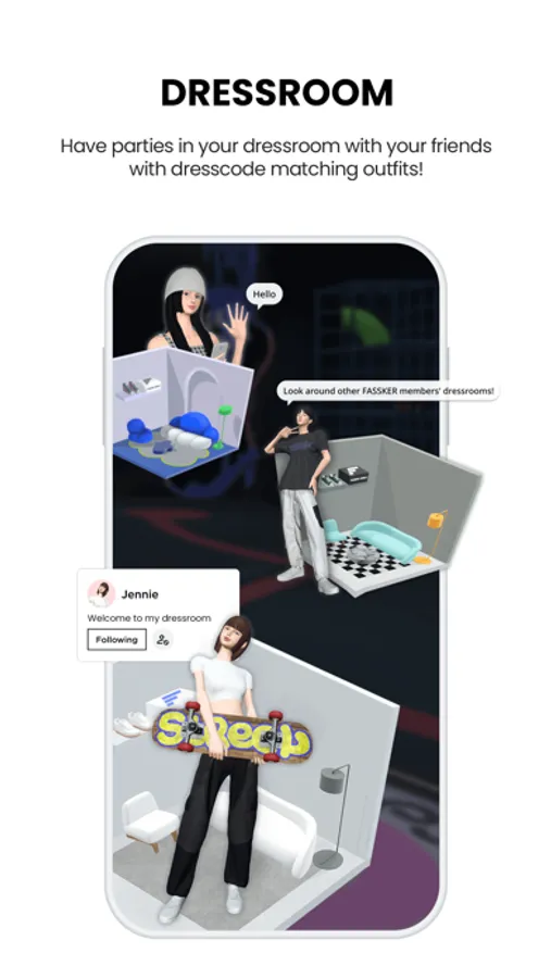 Display limited edition digital fashion in your dress room and have your frineds at your place.