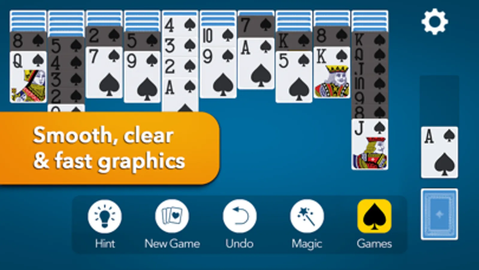 We carefully crafted it for you, Spider Solitaire lovers. Crisp clear, easy to see cards, high-quality graphics, instant load time, simple and clear interface.