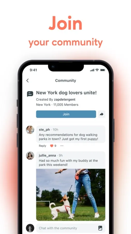 • Create or join communities and engage with others to find out what’s happening in your area.