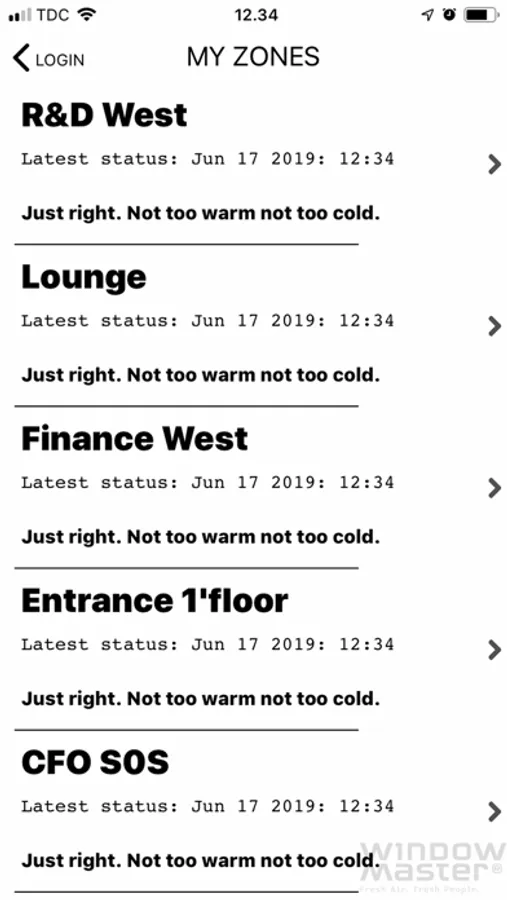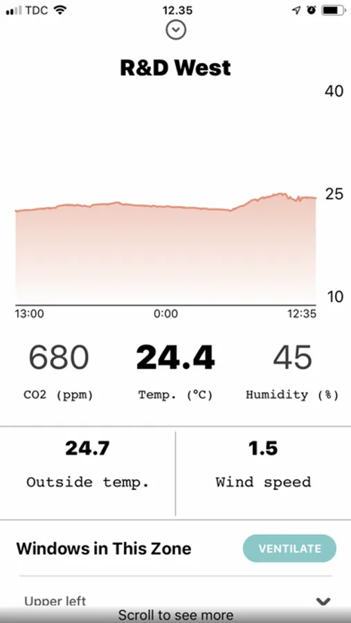 The app for NV Embedded® enables you to remotely control motorized windows to personalize the indoor climate and visualize indoor and outdoor climate data. With this app, you can visualize and influence humidity, temperature and CO2 levels, in your immediate surroundings in the building, for optimum air quality through natural ventilation.
