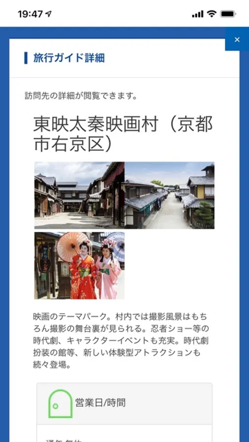 ・・・キーワードや地図より見学施設や食事場所などの検索ができます。