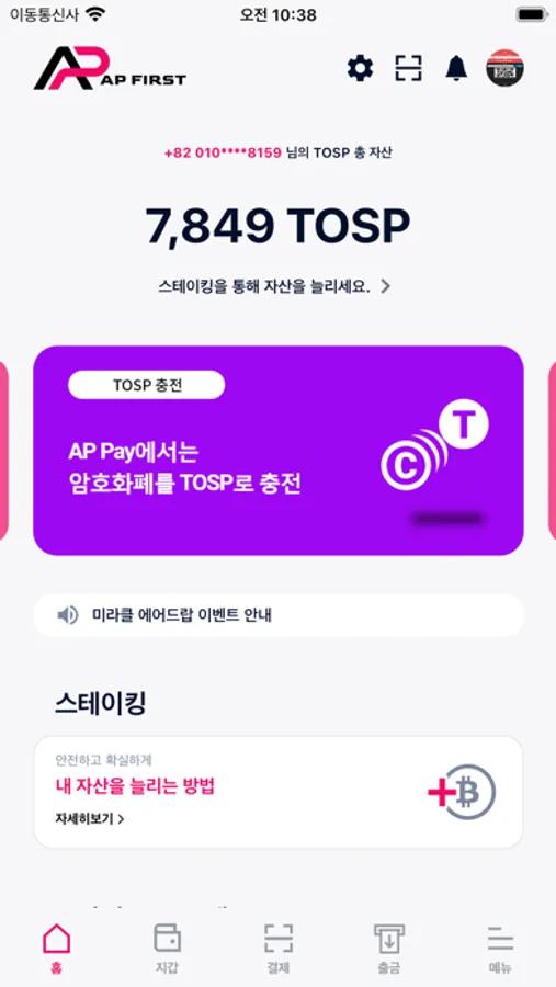 Users of the AP First will be able to deposit cryptocurrency, charge TOSP with the deposit, pay merchants with TOSP, withdraw cash from ATM machines with TOSP, exchange TOSP to cryptocurrency again, and send cryptocurrency to external wallets. Additional features under development include split payments and transfers between members. Features catered to the needs of users will continuously be updated.