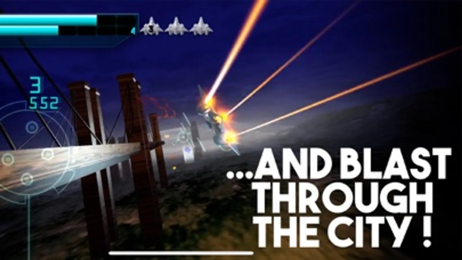 Nite Fighter delivers an arcade style flying shooter. Fire up your after burners and blast through waves of enemies and dodge sky scrapers in a battle to the death. Can you survive the night?