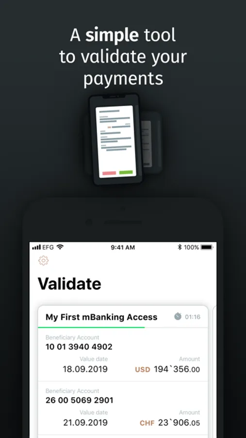 The EFG Access mobile app can now be used to verify requests from your eBanking accounts, quickly and securely, enabling actions to be executed. The request can be to confirm external payments, provide double signatures and authenticate client identity.