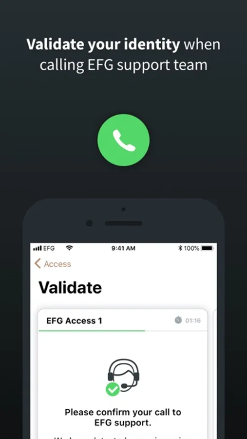EFG Access can be used by all clients calling our support line to verify their identity when they call our eBanking support team.