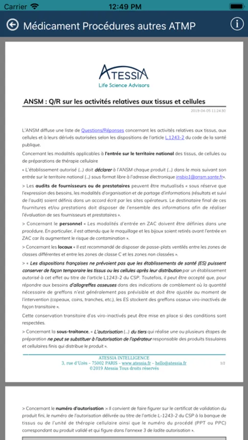 ATESSIA met à la disposition de ses abonnés une version mobile de sa plateforme ATESSIA INTELLIGENCE, leur permettant d’accéder à tout moment à son service de veille réglementaire.