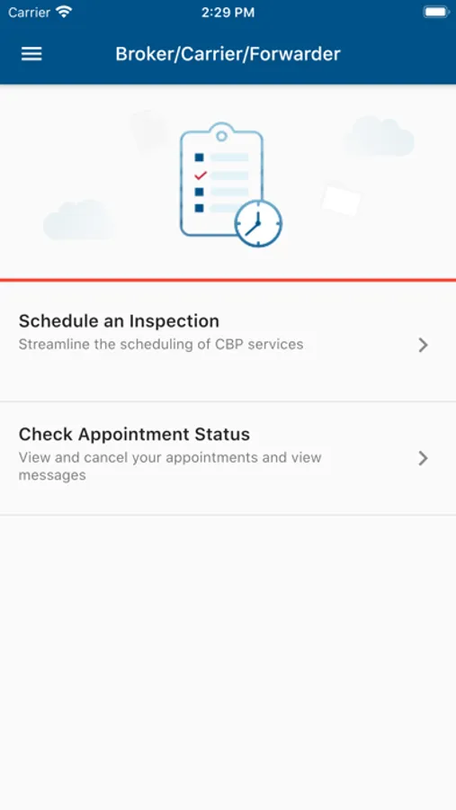 · The Inspection Appointment request feature allows brokers/carriers/forwarders to use their mobile device to request an inspection for perishable cargo entering the U.S. They will also be able to receive real-time status updates regarding their appointment requests, or chat with a CBP Agriculture Specialist if additional information is needed from them.